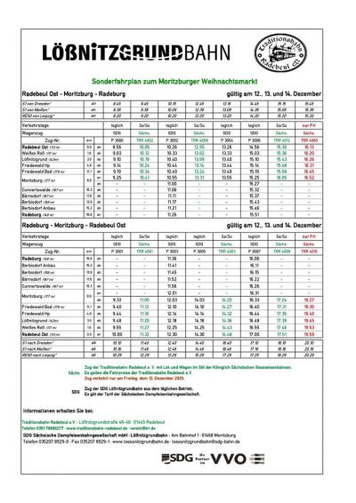Fahrkarten für die Hin- und Rückfahrt sind auf der Rückfahrt ebenfalls in den Planzügen der SDG Lößnitzgrundbahn gültig. |